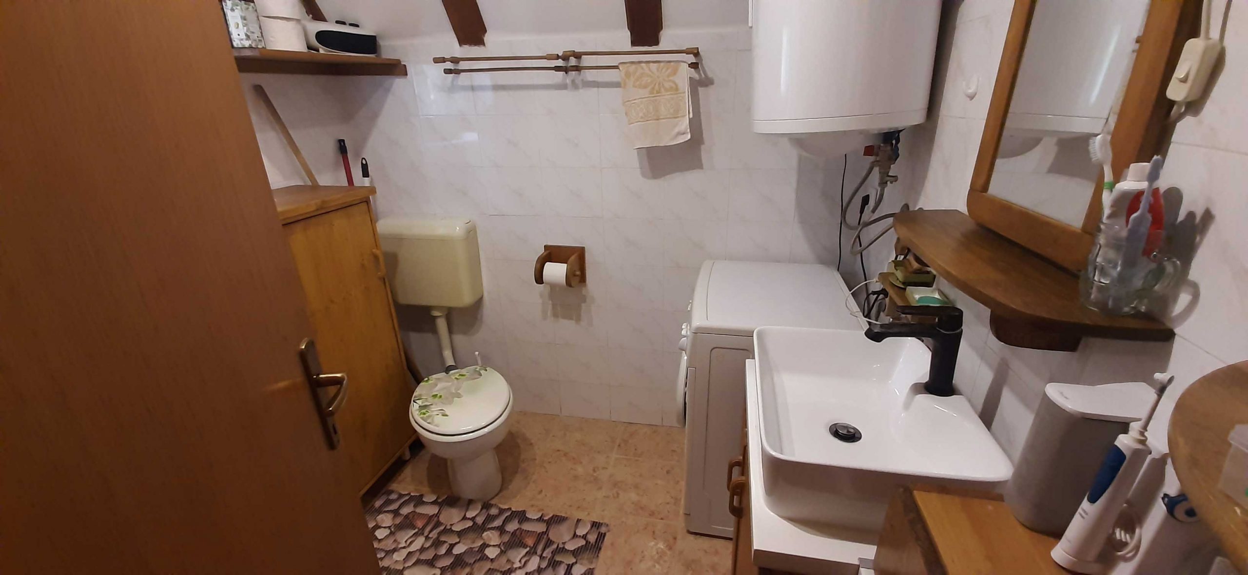 Na katu su dvije spavaće sobe. U jednoj su dva odvojena kreveta s pomoćnim ležajem na rasklapanje, dok je u drugoj bračni krevet. Na katu se nalazi WC s umivaonikom.